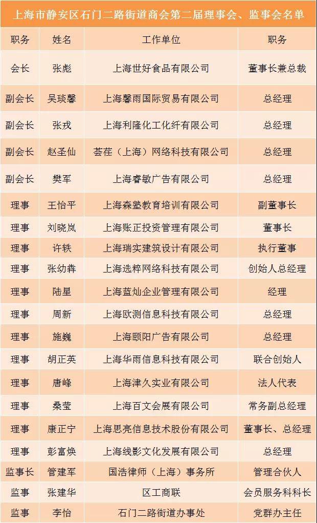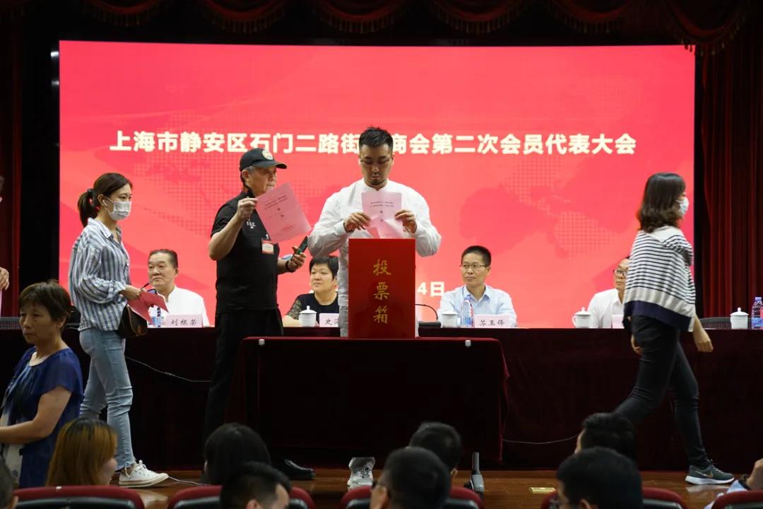 第一阶段召开上海市静安区石门二路街道商会第二届理事会、监事会选举大会。大会首先审议通过了《上海市静安区石门二路街道商会第一届理事会工作报告》(草案),随后选举产生了上海市静安区石门二路街道商会第二届理事会理事、第二届监事会监事。