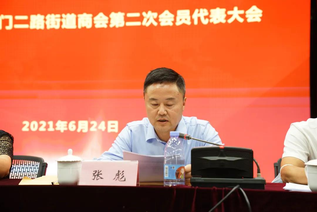 张彪会长宣布聘任秘书长、任命副秘书长的决定,聘任街道党工委书记可晓林为商会名誉会长,并颁发聘书。