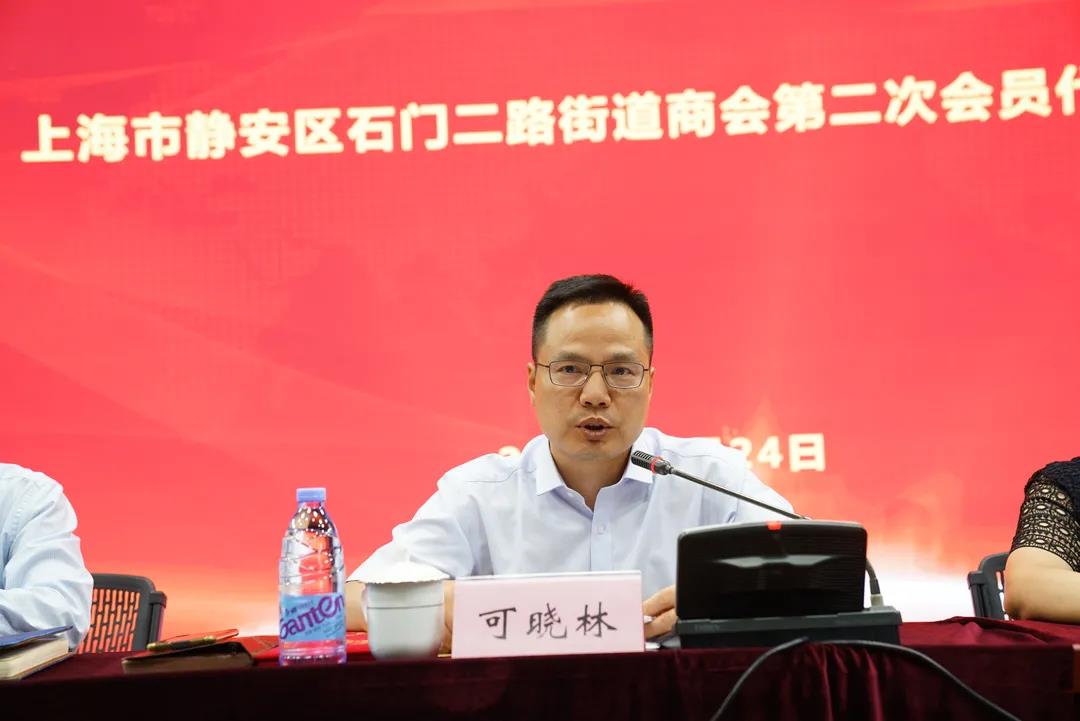 石门二路街道党工委书记可晓林代表街道党工委、办事处感谢上一届领导班子的付出,并对新当选的商会班子表示祝贺,希望新一届商会政治建会、团结立会、服务兴会、改革强会,为石二和静安的经济社会全面发展做出更大的贡献。