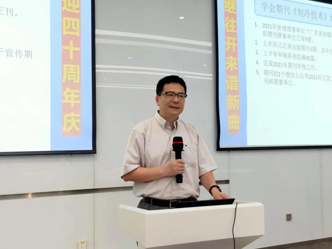 对于2021年学会下半年的工作,上海市制冷学会秘书长黄永华教授也进行了简要介绍,其中重点提到:2021年恰逢上海市制冷学会成立40周年,学会发起人物专访活动,办公室成员将继续采访一些老专家,聆听他们讲述学会故事,并收集老照片电子版,为大家呈现上海市制冷学会成长壮大的过程,学会还将于12月18—19日召开成立40周年纪念大会;上海市制冷学会在今年还启动了“工程能力评价”申报工作。会议期间,作为学会期刊《制冷技术》主编,上海市制冷学会监事长王如竹教授对期刊情况进行了简要汇报:2021年新增理事单位“广东美的暖通设备有限公司”,目前期刊理事单位已有9家;上半年已正常出版期刊3期,其中1期增刊,2期正刊;上半年审稿系统收稿90篇;完成2021年期刊年检工作;期刊的2个微信公众号2021年已发文40余条,用于宣传期刊和理事单位。