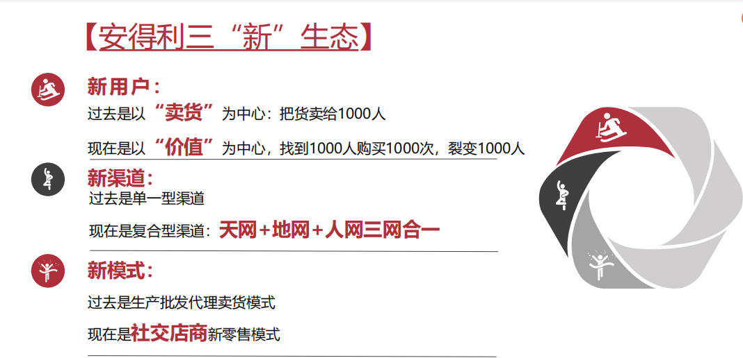 平台以互联网辅助门店,给用户带来极致的数字化体验。安得利荟聚云家采用三大“新”生态,在新用户,新渠道,新模式上寻求发展。将过去的以“卖货”为中心改变为以“价值“为中心,即找到一千人购买一千次,将这一千人进行裂变;将过去的单一型渠道换为现在的复合型渠道;将过去的生产批发代理卖货模式转换为社交店商新零售模式,同时进行数字化门店管理,倡导引导式购物体验,建立精准会员管理体系系统,打造线上线下全渠道打通,一站式服务,这样更好的为客户提供方便,为社会创造价值。